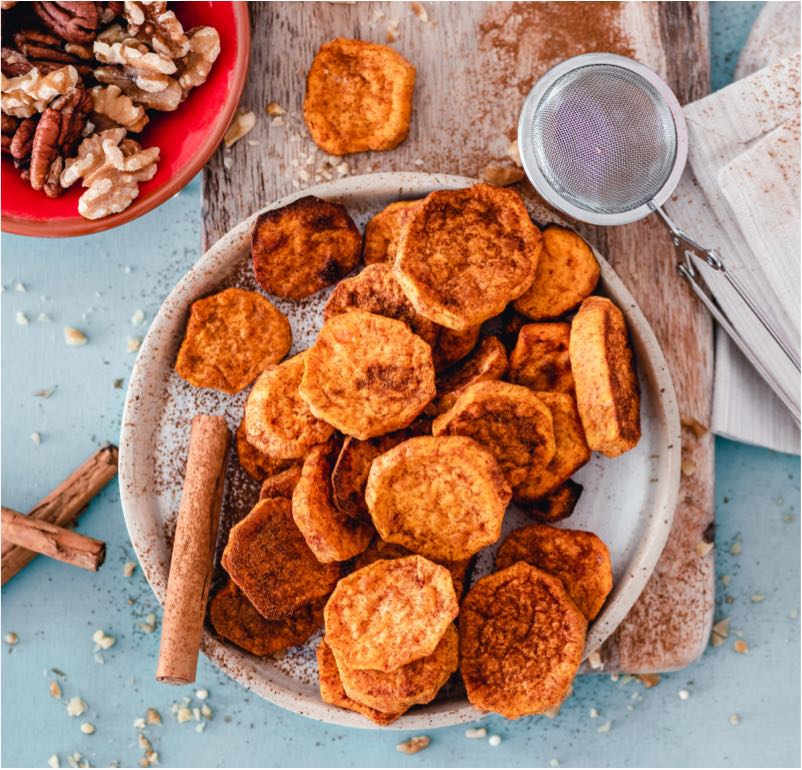 Add that too and bring to a gentle simmer. Season with salt and pepper. Leave it to simmer while you deal with the sweet potatoes. Wash the sweet potatoes and slice them widthways into 3mm discs. Place the slices in a mixing bowl with 2 tablespoons of oil.