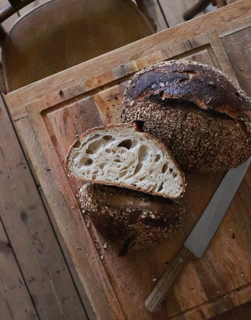 Using a knife, score the top of the dough with a cross and place into the oven to bake for 35-40 minutes. The bread will be cooked when a golden crust has formed and when the loaf sounds hollow when tapped on the bottom.