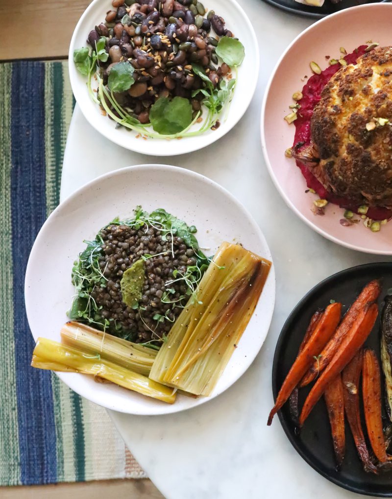 Pour the pancetta, beans and spring onions over the baby gem lettuce and pick out the sprigs of thyme. Slice the soft boiled eggs into quarters and arrange on the platter. Finally sprinkle over the rye crumb and top with a generous glug of the dressing before serving.